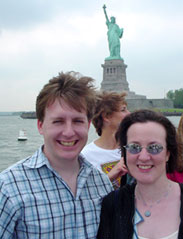 We do have a god-daughter now! Our darling niece Natalie was adopted from China in May 2003. She is very sweet (almost all of the time...in fact, we once thought she never shed any tears!) and loves diving from furniture and playing in the bathtub. We hope that she will take gymnastics lessons soon she is only two and half and can already practically do a front handspring unaided!! (Sometimes it turns into just a somersault, though!) We had so much fun baby-sitting her in October (and we had NEVER baby-sat before!) that we might actually do it again! 11. So why didn't you throw a party this year? We did, but it was in June when Harry Potter III opened. The theming was a meeting of the "National Wizard Watch Institute," a takeoff on the "National Neighborhood Watch Institute" (or "Neighborhood Watch," as you probably know it). Of course, the NWWI was starting up chapters because Sirius Black had been spotted in the area. The invitation was a four-page "Muggle Mail" edition of "The Daily Prophet." We are hard-core for sure, so we make sure we only invite people who "like" Harry Potter as in "I like to breathe." 12. So what else have you been up to this year? We've been taking tap lessons now for about a year and a half. Michael had to give them up recently because he injured his foot, but Heather kept taking them. We now know enough to be REALLY impressed by the shows we see with tapping in them! And enough to impress people who don't know that much about tapping. :) In June we went to New York, where we appreciated the tapping in "42nd Street" and also saw "Wicked," "Wonderful Town" and "Forbidden Broadway." We also lucked out again by being there the weekend of a free performance in one of the parks - "Broadway under the Stars"! And Heather finally got to see the Statue of Liberty in person and walk through (some of) Central Park. Heather also got invited along to her sister's time share near Orlando (two trips to Disney in one year!!) with her sister, niece and niece's friend. Ah still hip enough to hang out with the teenagers!