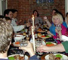 In November 2001, the first Harry Potter movie was released, and we had a party on premiere day. Heather made standing rib roast and Yorkshire pudding for ten guests, finishing with a proper English trifle. Guests snacked on licorice wands, Pumpkin Pasties, Butterbeer, pumpkin juice and Chocolate Frogs (with cards portraying their wizarding selves and wizardly bios) while challenging their HP knowledge with trivia. This left us too exhausted to think about a Christmas party, much less cards!